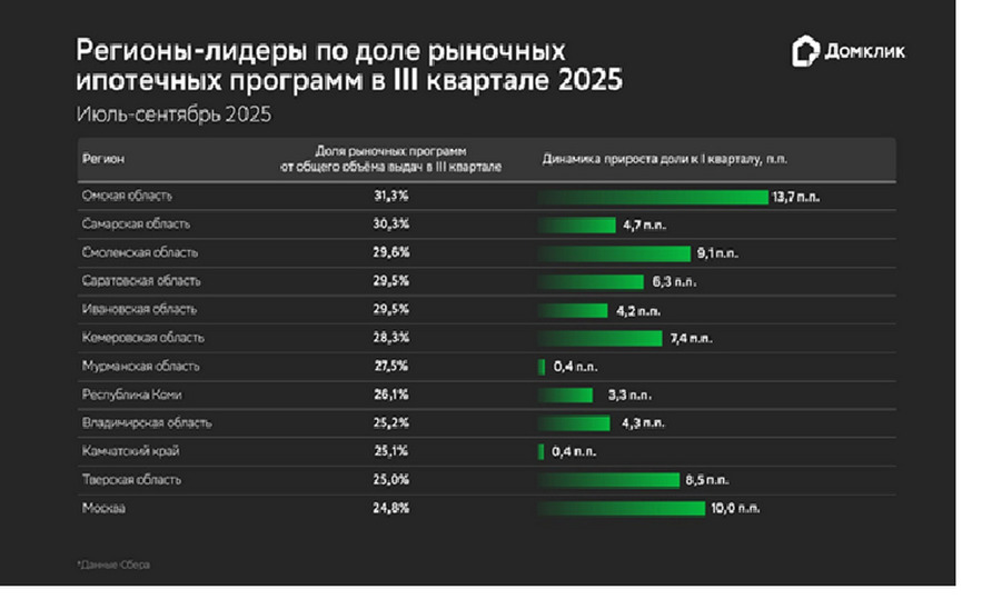 Регионы-лидеры по доле рыночных ипотечных программ в III квартале 2025 года