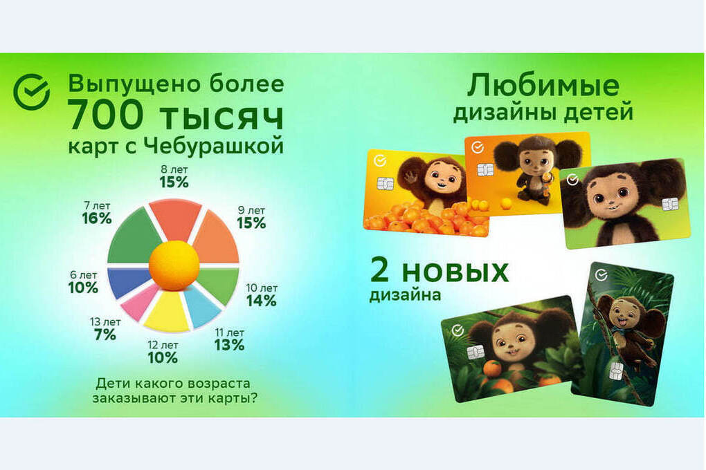 Новый выпуск детских СберКарт с Чебурашкой тоже ограничен. Заказать такую можно ребёнку 6-13 лет в приложении СберБанк Онлайн.