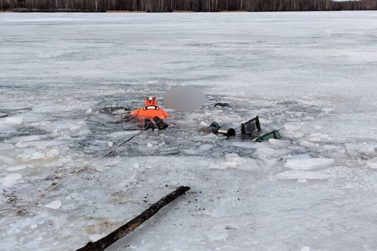 Мужчина 1958 и 1980 годов рождения выехали на реку на снегоходе типа «собака». После того как снегоход утонул, младший мужчина смог выбраться из полыньи и позвонил спасателям.