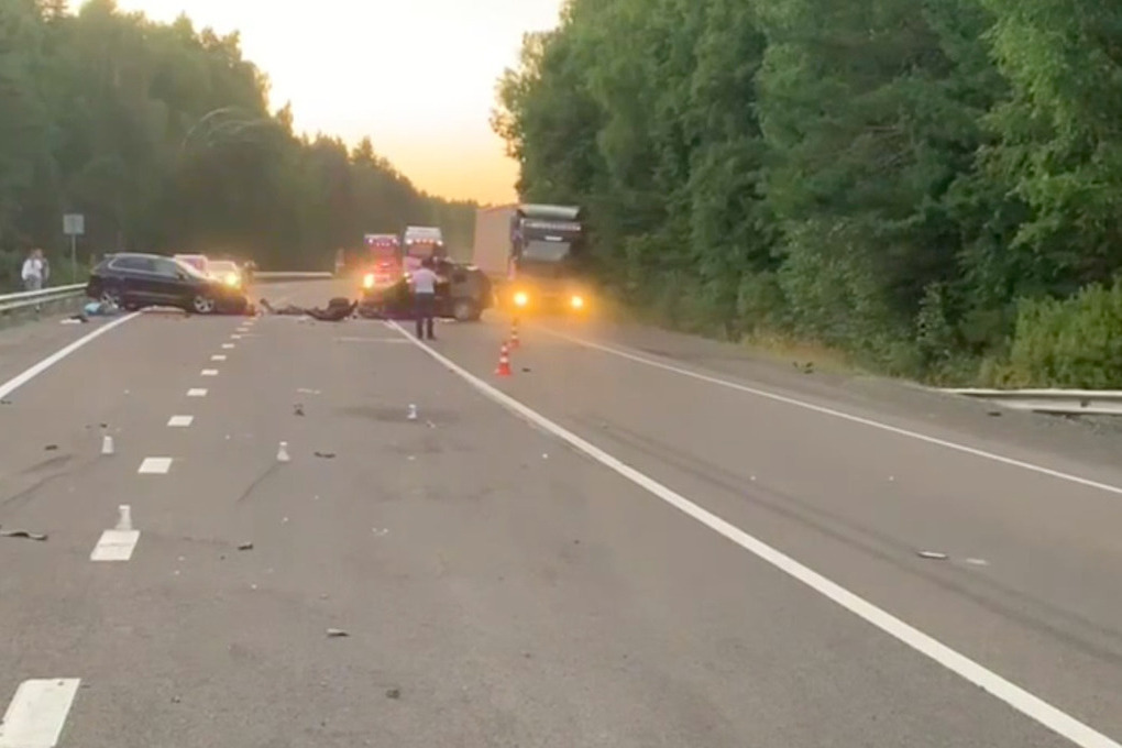 По предварительным данным, около 17:48 водитель автомобиля Renault выехал на встречную полосу и столкнулся с грузовиком Isuzu. От удара фуру отбросило на Volkswagen, который двигался в попутном направлении.