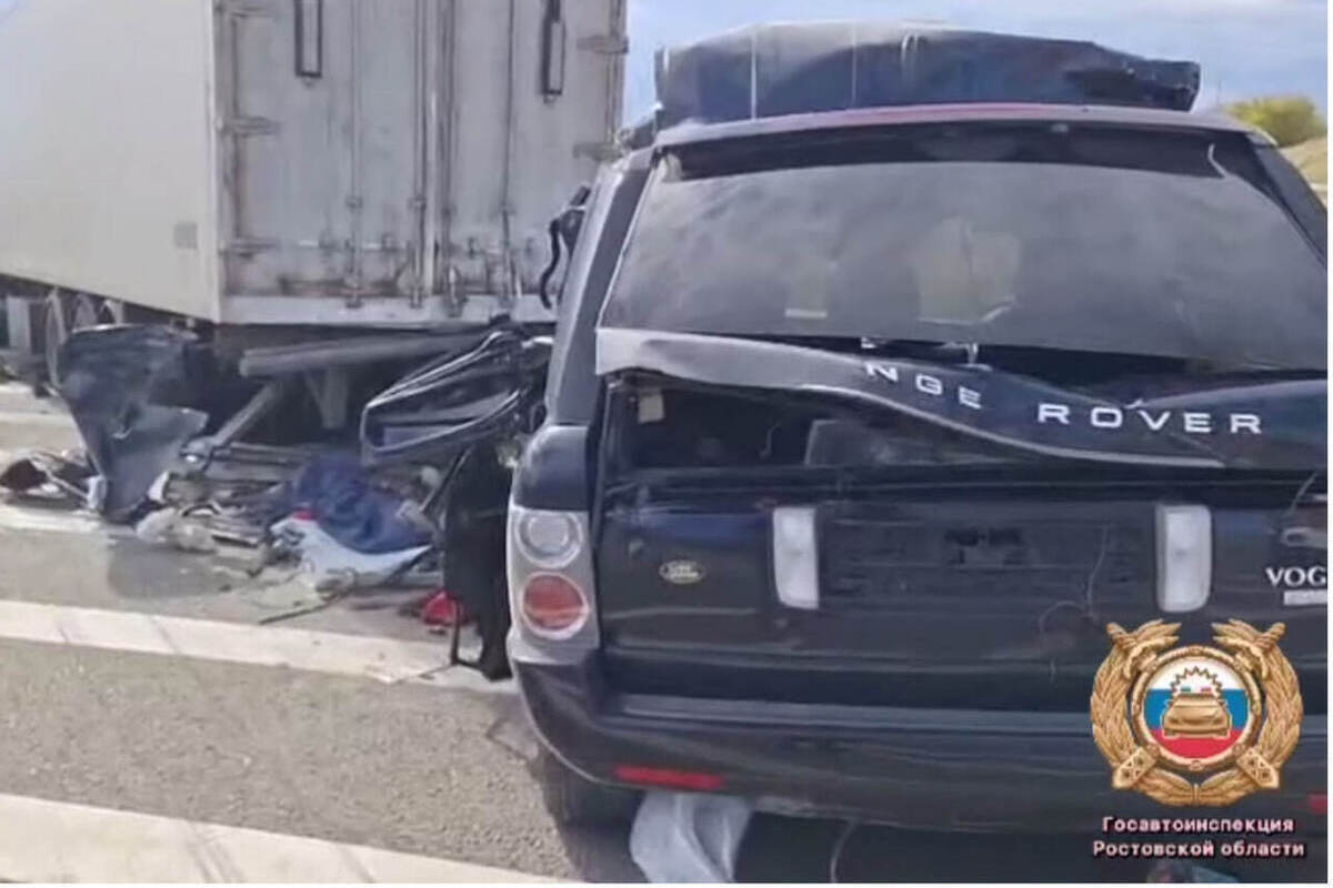 ДТП случилось около полудня 1 октября на 860 км + 880 м автотрассы М4 Дон в Миллеровском районе Ростовской области. По предварительным данным, Land Rover выехал на правую обочину проезжей части и врезался в стоящий грузовик Mercedes-Benz с полуприцепом.