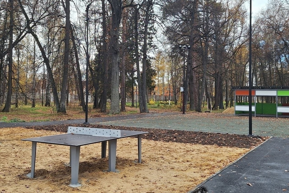 Уложена брусчатка, готов фундамент под навесы амфитеатра, обустроена спортивная площадка для людей старшего поколения с новыми уличными тренажерами, на территории многофункциональной зоны «Спортивное ядро» установлены турники и теннисные столы. В парке должен быть туалет, тротуары, навесы от солнца.