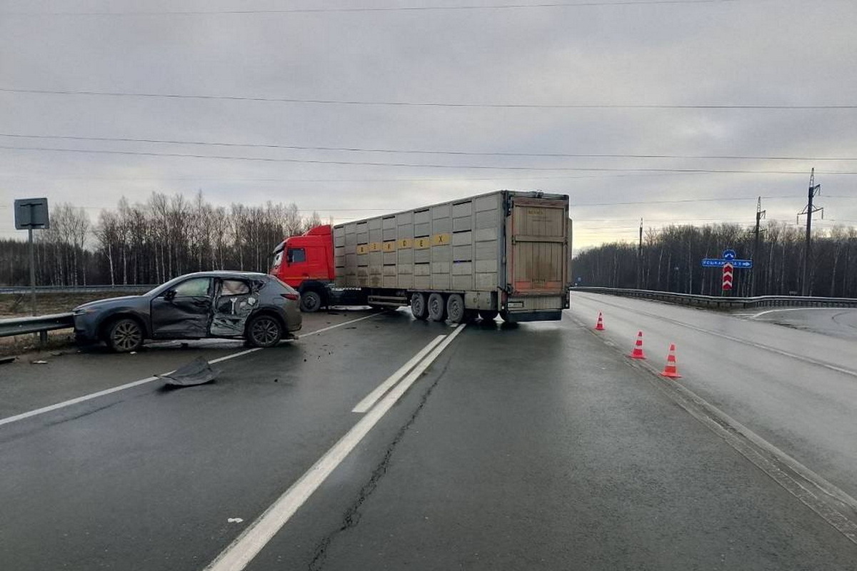 В восьмом часу утра на восточном обходе Йошкар-Олы столкнулись грузовик и легковой автомобиль «Мазда». По предварительным данным, МАЗ с полуприцепом занесло, и он оказался на встречке. Водителя легкового авто отправили в больницу с травмами.