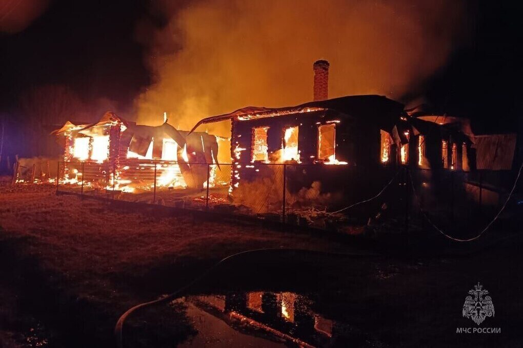 К приезду огнеборцев пламя бушевало в доме и хозяйственных постройках, распространившись почти на 200 квадратных метров.