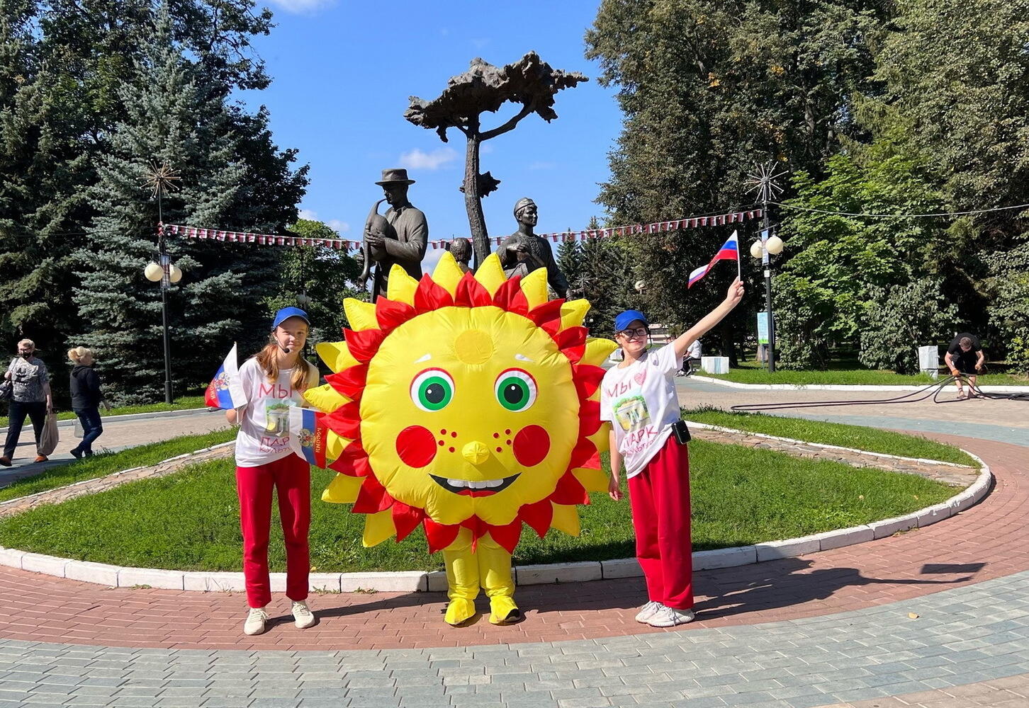 Затем горожане в футболках цветов российского флага пробежали от площади до солнечных часов на набережной.