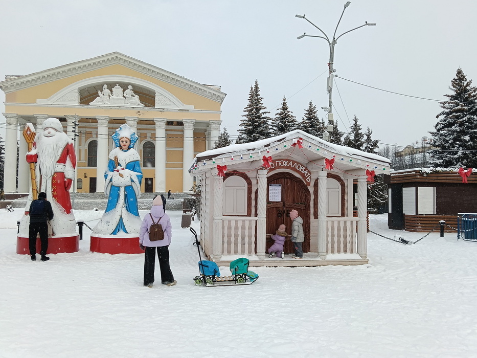 Две недели назад зажгла огни на площади Ленина в Йошкар-Оле главная елка республики. Здесь работает каток и открыта резиденция Деда Мороза и Снегурочки.