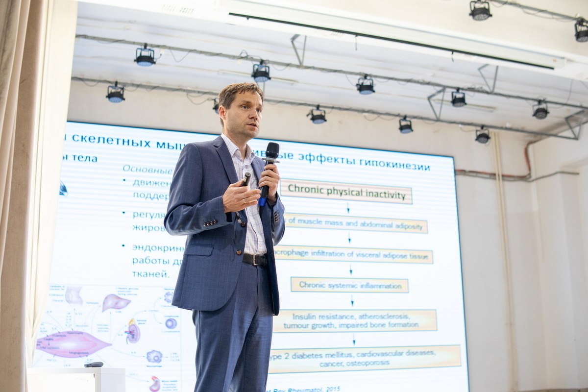 Так, член-корреспондент РАН, профессор МГУ им. М.В. Ломоносова Дмитрий Зоров прочитал лекцию «Митохондрии как клеточный регуляторный центр». Профессор РАН, сотрудник Института медико-биологических проблем Даниил Попов поднял тему нарушений биогенеза митохондрий в мышцах человека при гипокинезии.