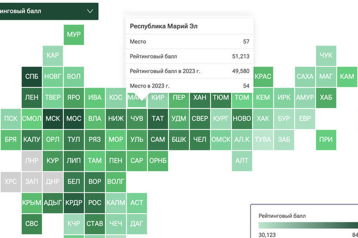 Общий рост показателей наблюдается в большинстве субъектов: медианный рейтинговый балл повысился с 53,634 до 55,343, сообщает ИА МедиаПоток.