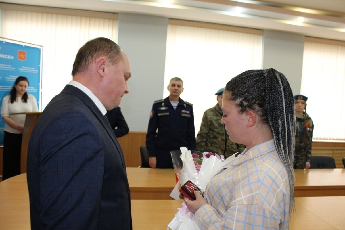 Руководитель козьмодемьянской администрации Михаил Козлов вручил орден Мужества матери бойца Никиты Перчаткина Галине Николаевне Таныгиной.