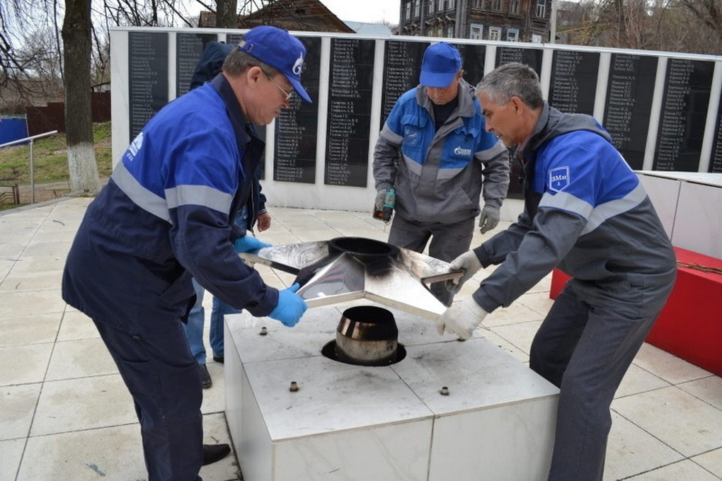 Работы полностью выполнены в Козьмодемьянске. Газовики проверили состояние газогорелочного устройства Вечного огня, запорной арматуры, герметичность соединений, очистили горелку и отрегулировали высоту пламени.