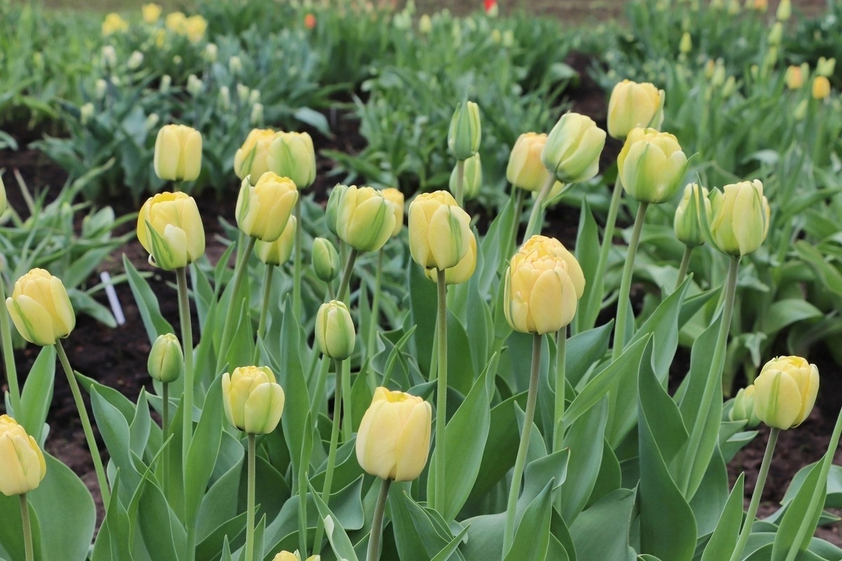 К началу майских праздников в Ботаническом саду Йошкар-Олы раскинулось поле тюльпанов. Массовое цветение началось ещё в конце апреля.