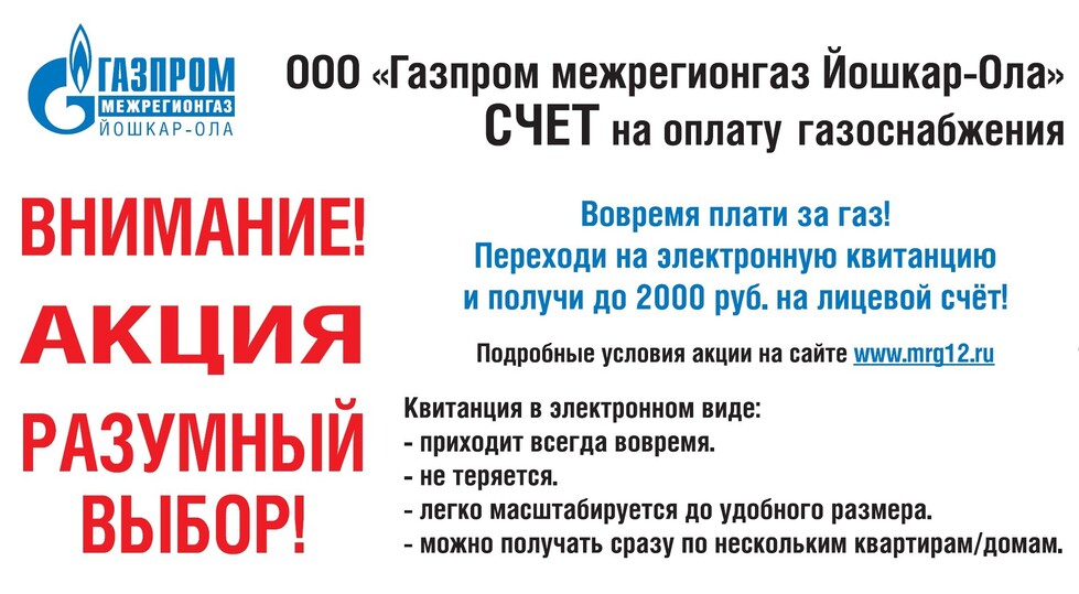 Реклама. ООО «Газпром Межрегионгаз Йошкар-Ола». ИНН 1215068716