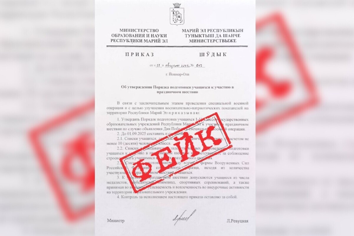 В Министерстве образования и науки Марий Эл официально опровергли этот «приказ». Подчеркнули, что документ является подделкой и не имеет никакого отношения к деятельности ведомства.