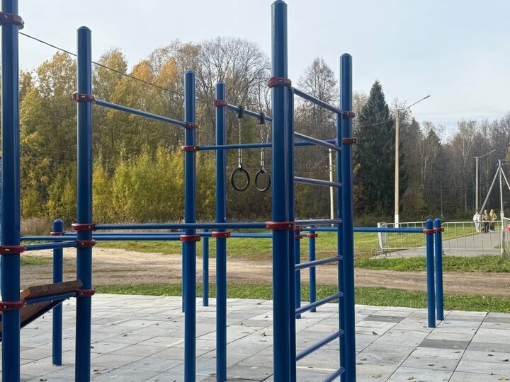 4. Обновленная площадка в Корте (56.597721, 47.970108). Взрослые и дети приходят сюда заниматься на кольцах, брусьях, турниках. Доступ открыт в любое время. Зимой рядом проходит лыжня.