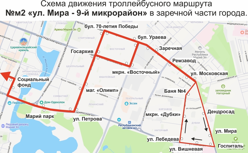 С 11 ноября в Йошкар-Оле изменится расписание и схема движения троллейбуса № 2, следующего от улицы Мира до 9-го микрорайона.