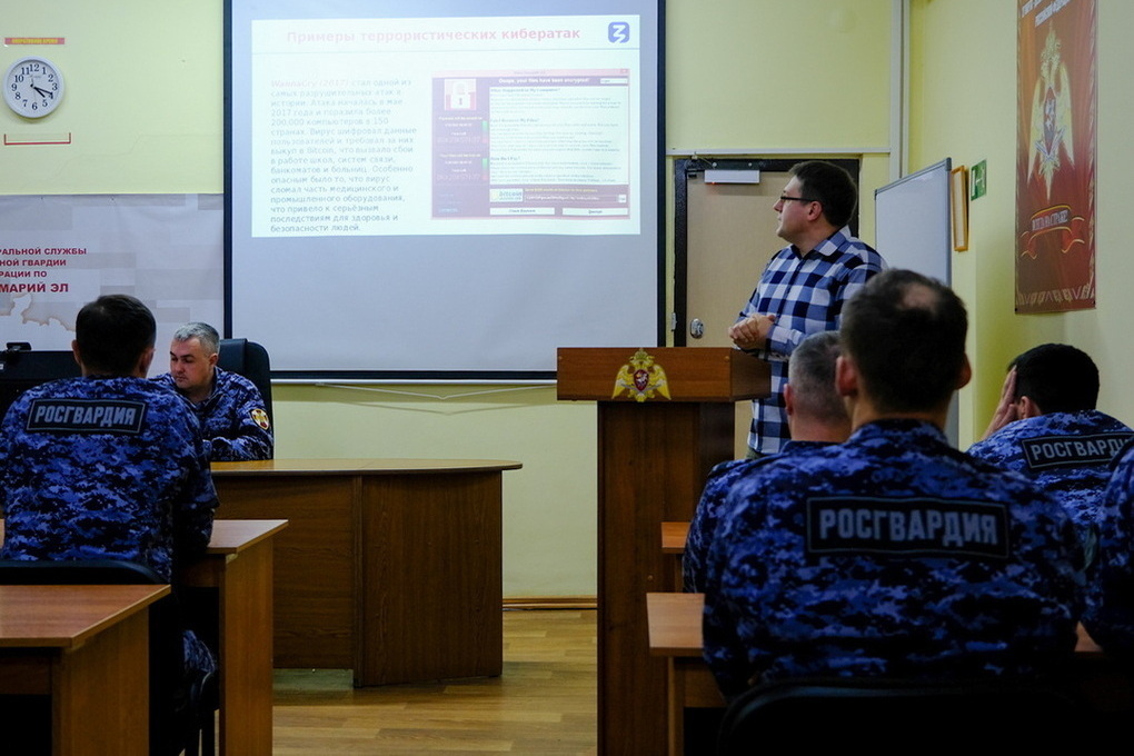 Лектор рассказал росгвардейцам о взаимосвязи кибертерроризма с технологиями информационного и информационно-психологического противоборства, охарактеризовал основные инструменты ведения информационной войны, такие как массовая дезинформация, использование автоматизированных ботовых сетей, целевая психологическая обработка, и обозначил их роль в современном политическом противостоянии.