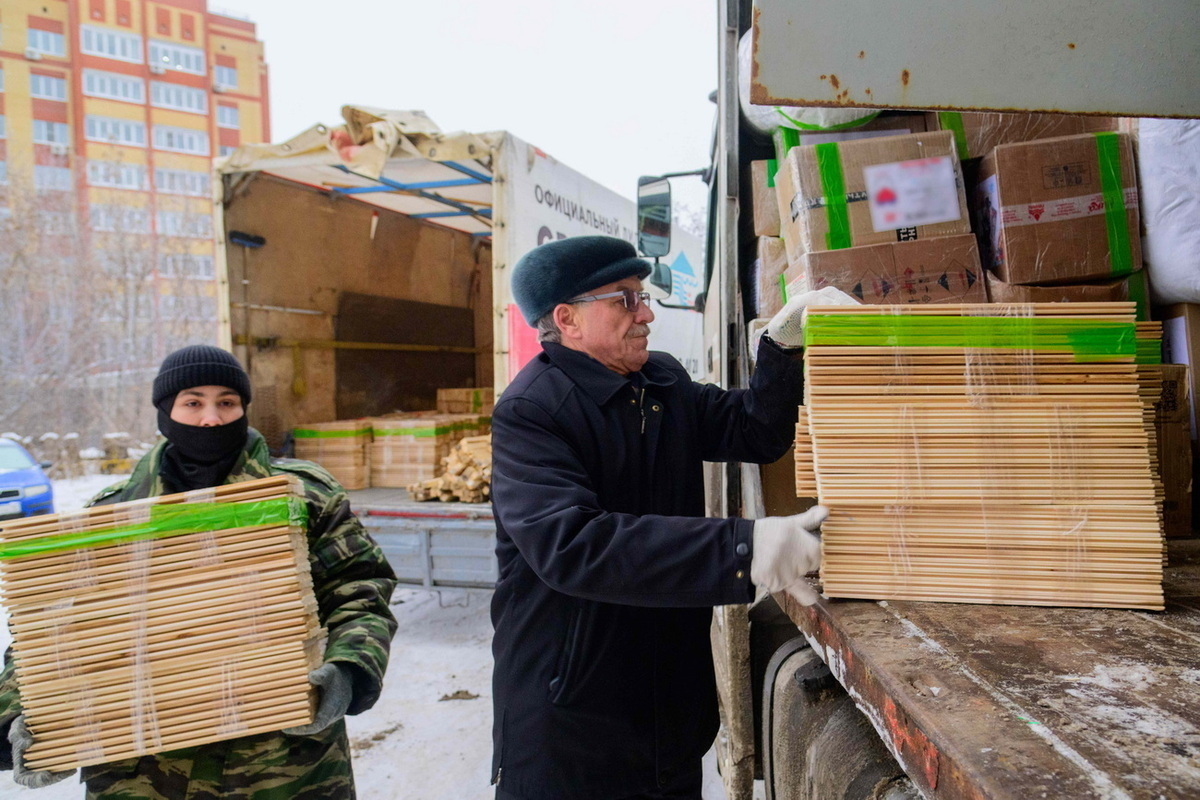 В составе 61-й миссии выехали из Йошкар-Олы три грузовика. Они везут 24 куба пиломатериалов, другие строительные материалы, окопные печи и свечи, три автомобиля УАЗ, две «Нивы» и «Ладу Приору», а также прицеп, мотоциклы и оружие.